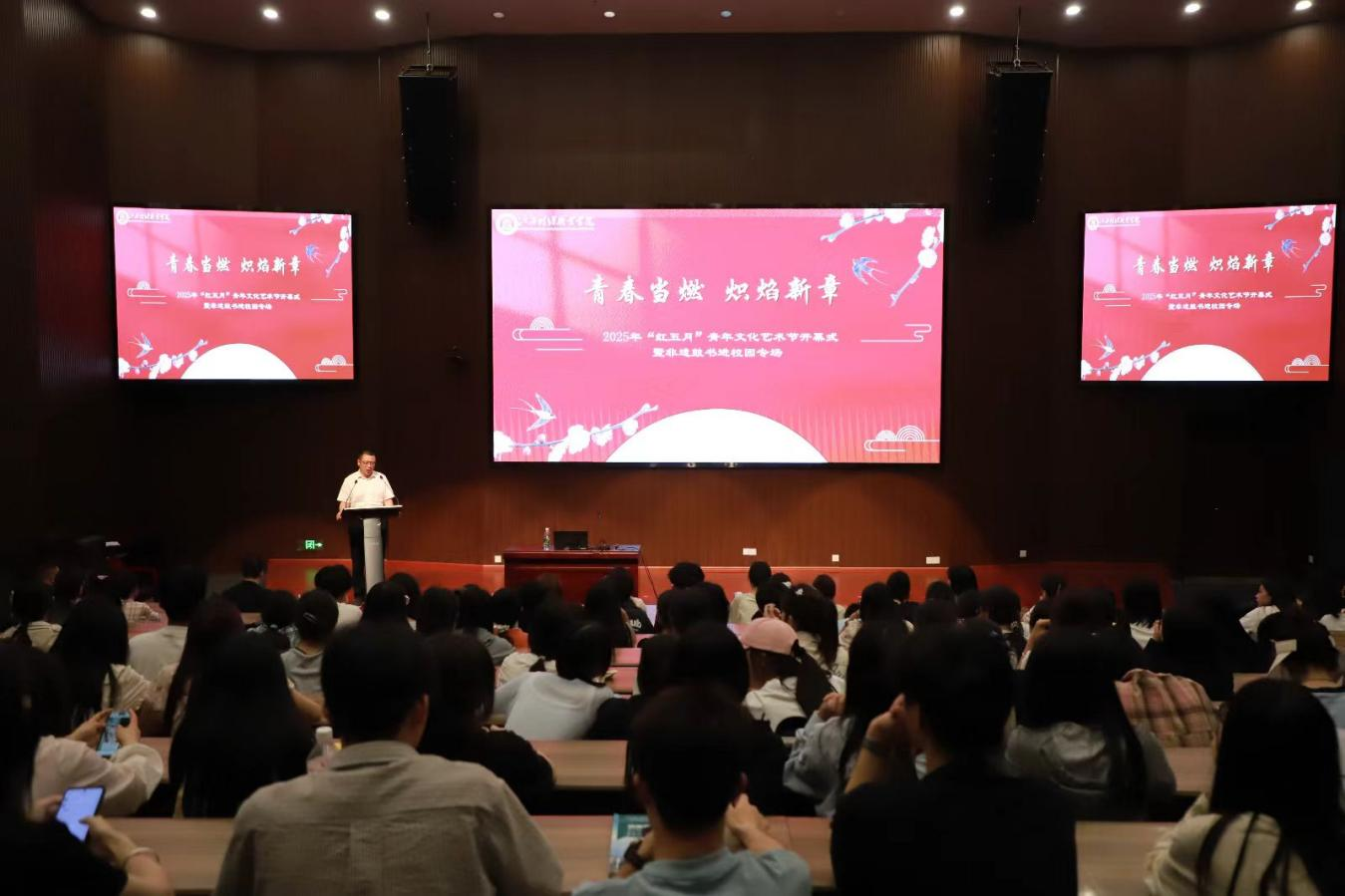 五月花海,青春飛揚。為引導(dǎo)學(xué)生傳承紅色基因、弘揚中華優(yōu)秀傳統(tǒng)文化,4月29日,我校在八里湖校區(qū)二號報告廳舉辦了“紅五月”青年文化藝術(shù)節(jié)開幕式暨非遺鼓書進(jìn)校園活動。黨委委員劉鋒出席開幕式并致辭。