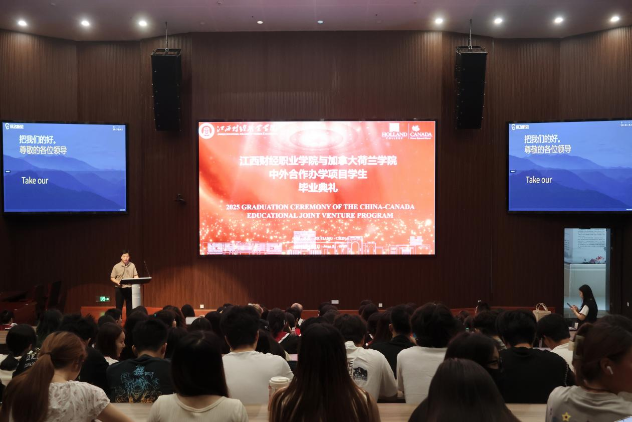 6月9日,我校與加拿大荷蘭學院合作辦學項目2025屆會計專業、計算機網絡技術專業畢業典禮分別在我校八里湖校區行政樓和潯陽校區綜合樓舉行。加拿大荷蘭學院教務長Craig Dauphinee、國際合作及亞太事務主任邱洪濤先生,我校黨委委員、副校長馮弋江、黨委委員劉鋒出席典禮,會計學院、信息工程學院、工商管理學院、國際教育學院等部門負責人、中外教師代表及全體合作班級畢業生參加了畢業典禮。典禮由國際教育學院黨政辦公室主任王禾傳主持。