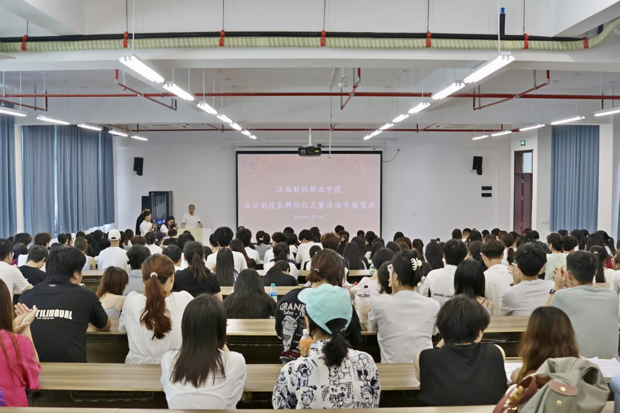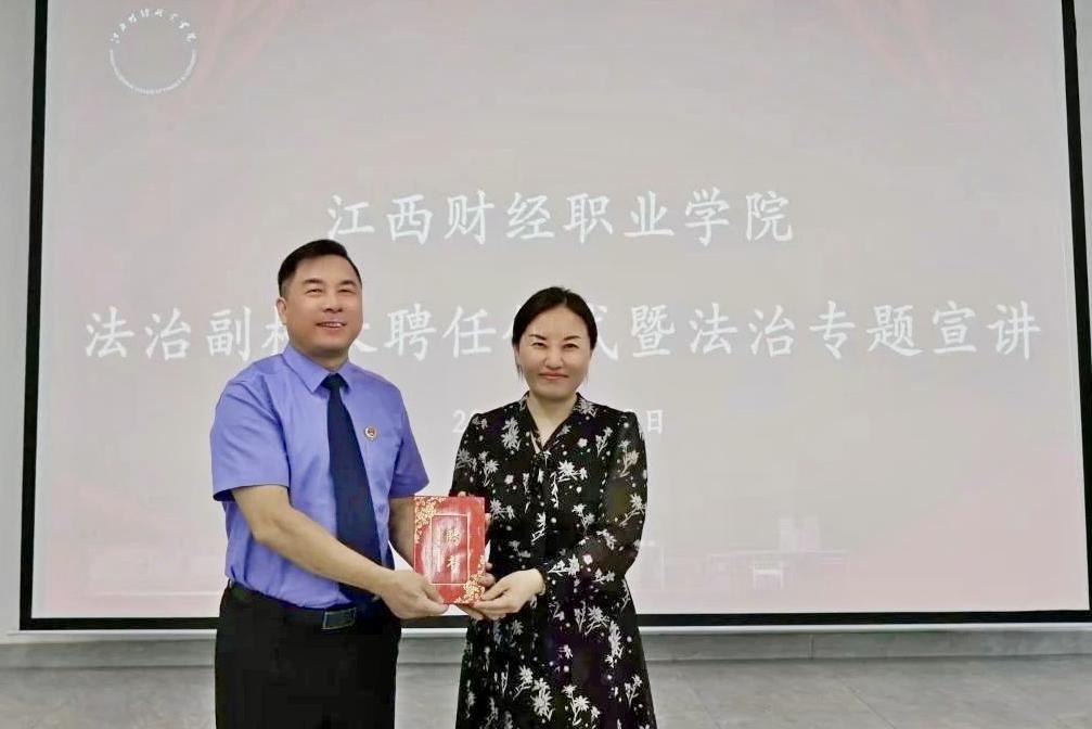 為深入推進法治校園建設,6月13日下午,我校在八里湖校區一號教學樓117教室舉行法治副校長聘任儀式暨法治專題宣講活動。此次活動特別聘任九江市潯陽區人民檢察院黨組書記、檢察長劉士豪為學校法治副校長。學校黨委副書記、校長彭慧,黨委副書記金小軍、全國人大代表張海榮出席,黨委宣傳部、安全保衛處、學生工作處等部門負責人和師生代表300余人參加本次活動。