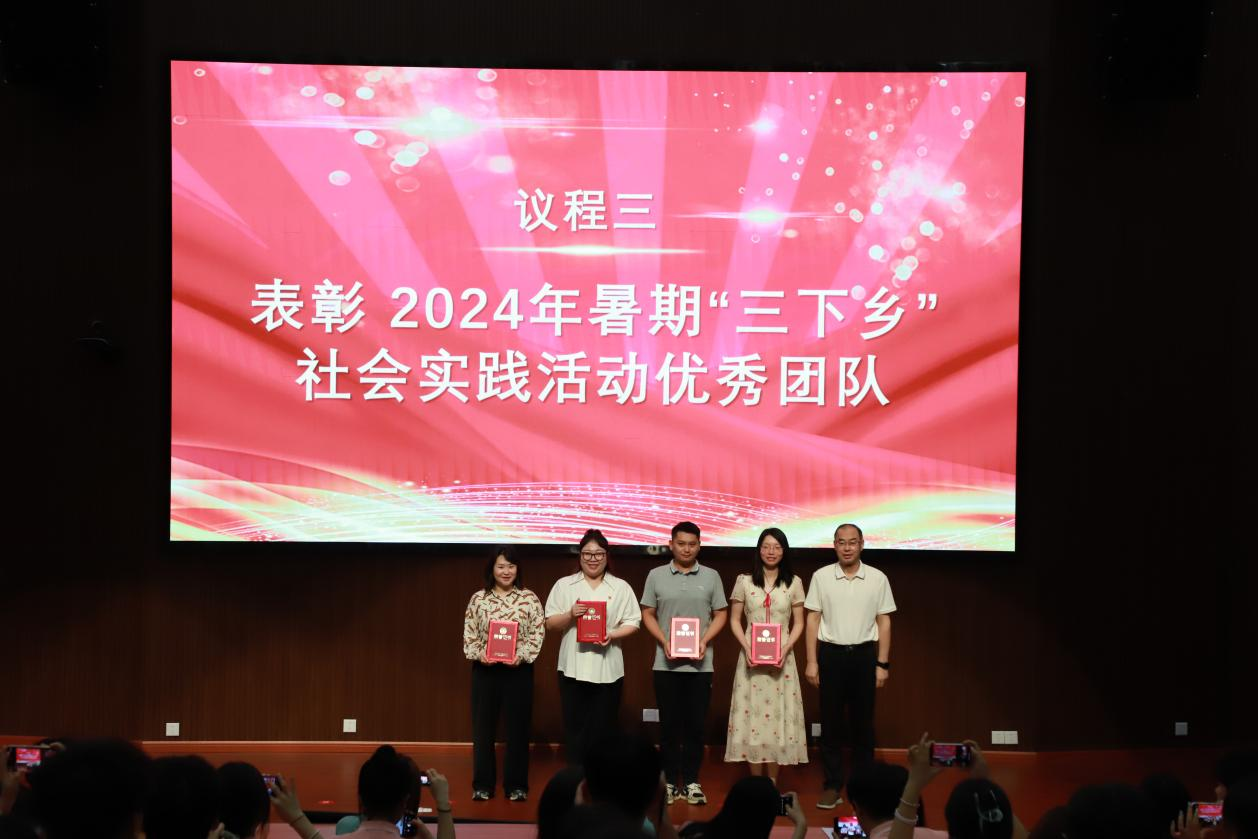 出征儀式上,金小軍為獲得2024年暑期社會實踐省級優(yōu)秀團隊頒獎,各黨總支負責人為2025年暑期社會實踐活動各團隊授旗,教師代表熊凱、學生代表淦方宇分別發(fā)言,并播放了2024年暑期社會實踐活動紀錄片。