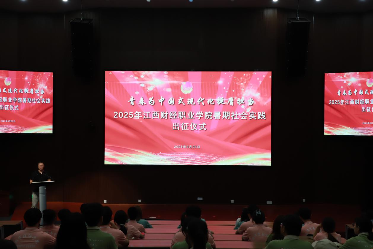 長風破浪正當時,青春揚帆赴山海。為深入學習貫徹習近平新時代中國特色社會主義思想,引導青年學生在實踐中“受教育、長才干、作貢獻”,6月26日,我校2025年“青春為中國式現(xiàn)代化挺膺擔當”暑期社會實踐活動出征儀式在八里湖校區(qū)行政樓二號報告廳舉行。校黨委副書記金小軍出席,各學院黨總支、團總支負責同志,實踐隊指導教師及團隊成員共200余人參加。儀式由校團委負責人廖國臣主持。