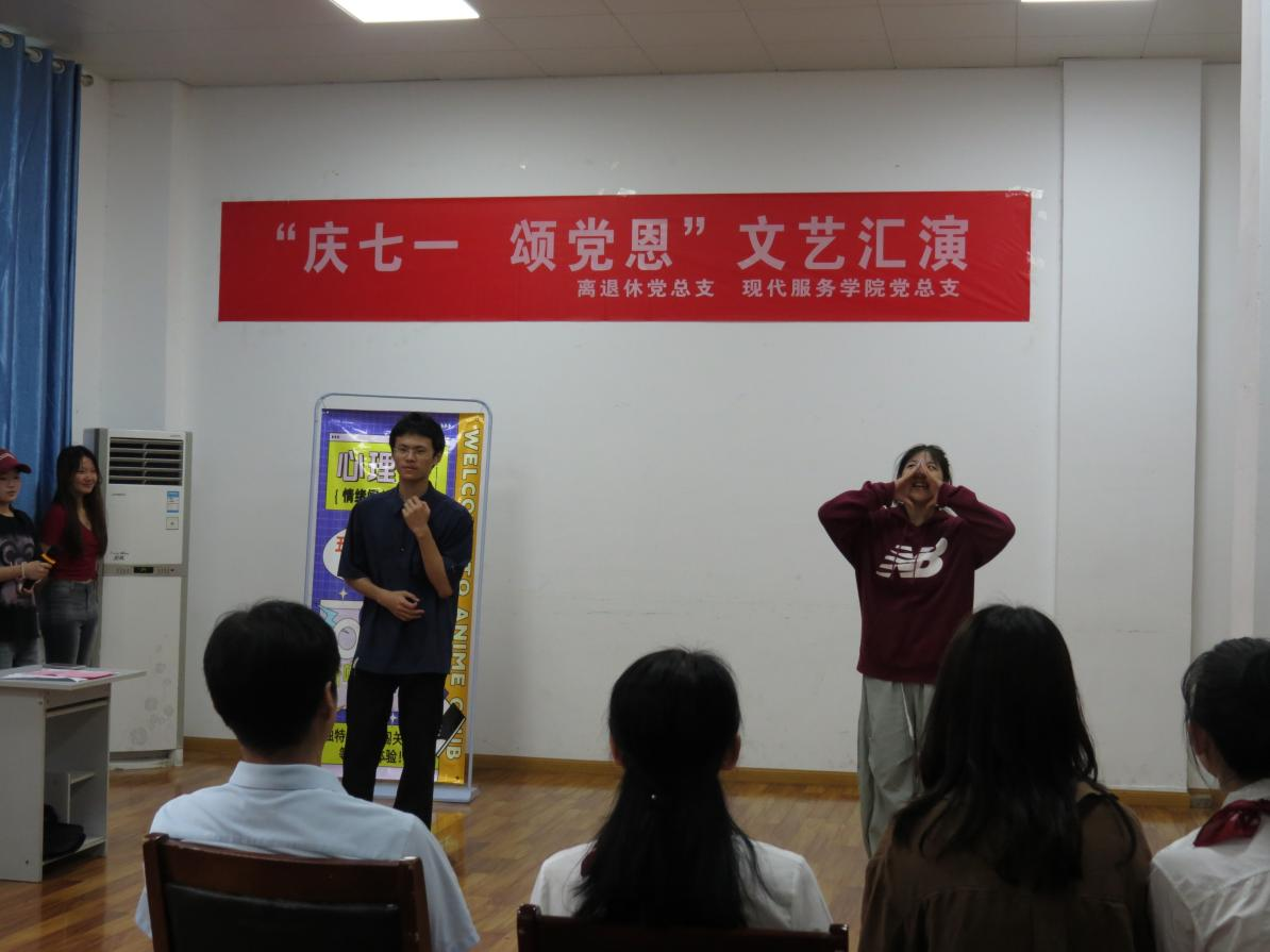 在喜迎中國共產黨成立104周年之際,一場由離退休黨總支與現代服務學院黨總支聯袂打造的“慶七一 頌黨恩”文藝匯演于6月27日下午在潯陽校區紅樓老同志活動中心舉行。文藝匯演以多元的藝術形式展現了中國共產黨走過的光輝歷程以及現代青年的活力風采,表達了師生們對黨的深厚情感。