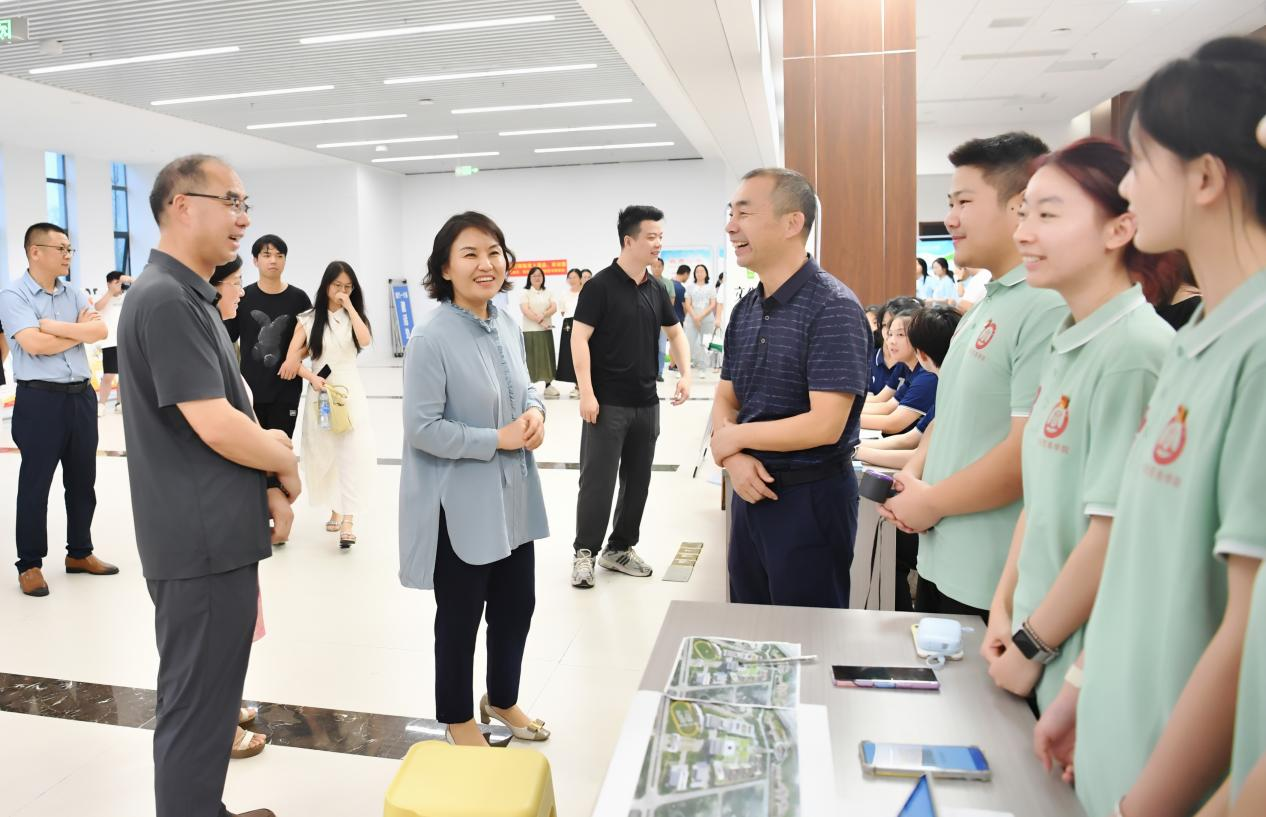 校領導一行來到潯陽校區羽毛球館新生報到點。彭慧與各學院的迎新教師親切交流,鼓勵他們多與新生溝通,幫助新生快速適應大學學習生活。