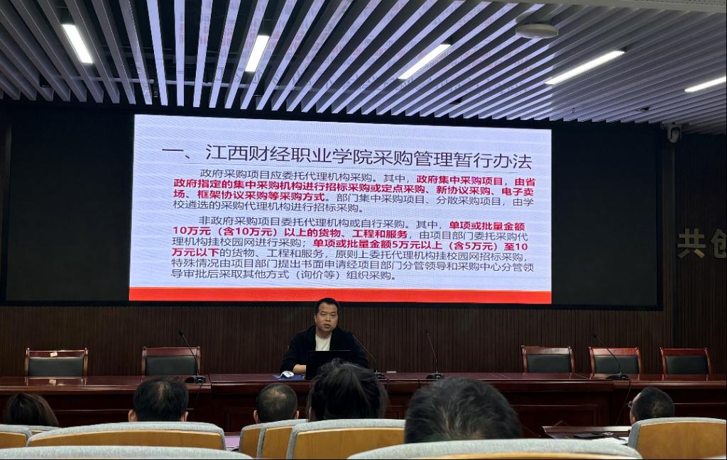 本次培訓由采購中心主任肖斌主講,主要分三個方面進行講解,一是重點介紹我校新制定的采購管理辦法的具體內容;二是結合實例對我校采購流程進行講解;三是針對采購中常見的問題進行提醒。我校采購管理辦法是加強學校內控管理的重要舉措,通過培訓進一步提升各部門的規范意識。