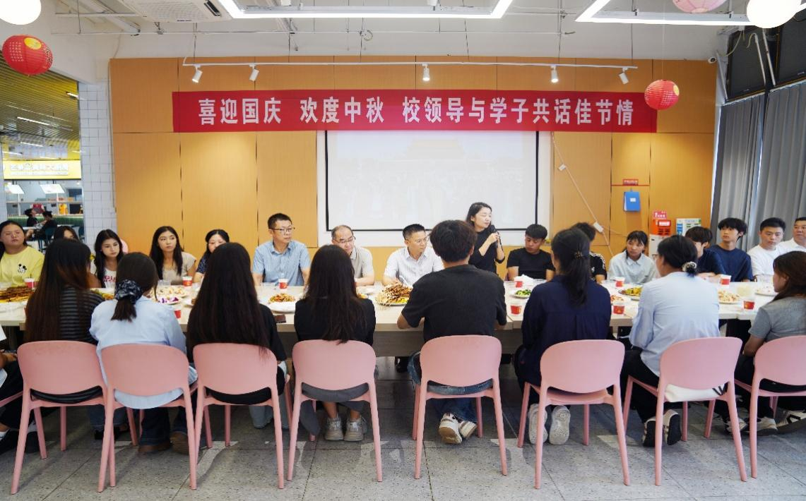 時維金秋,雙節同至。10月1日中午,我校“喜迎國慶 歡度中秋 校領導與學子共話佳節情”主題活動在八里湖校區北區食堂溫馨舉行。校黨委書記李松志、黨委副書記金小軍、黨委委員劉鋒等親臨現場,與來自各二級學院的各民族學生代表歡聚一堂,暢談交流,共話中華一家親,現場洋溢著濃厚家國情懷與節日溫馨。