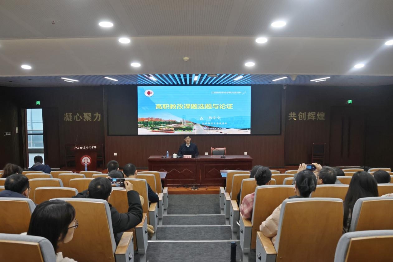 為扎實推進教育教學改革,提升教師教改課題的研究與申報能力,11月21日,我校在八里湖校區舉辦“高職教改課題選題與論證”專題培訓會。會議特邀江西師范大學教務處處長揭安全教授擔任主講,各學院教學負責人、骨干教師及青年教師代表參加培訓。
