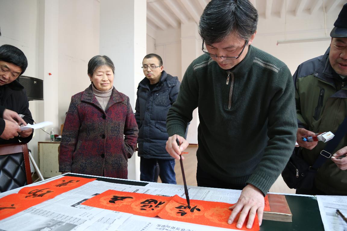 “千門萬戶瞳瞳日,總把新桃換舊符”。過春節貼春聯是我國傳統民俗,有辭舊迎新,抒發美好愿望,增加節日喜慶氣氛的作用。猴年春節來臨之際,宣傳統戰處和工會特邀我校呂建斌、李洪春兩位書法家現場為離退休老同志書寫春聯,把吉祥喜慶和學校的關懷之情送到老同志手中。