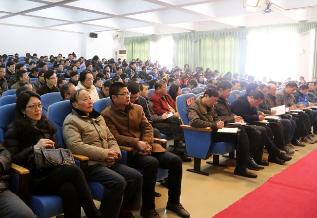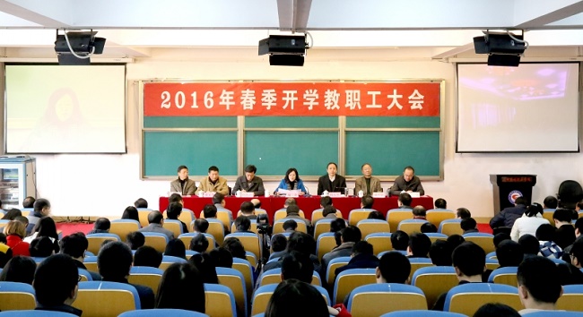 又是一年春色好,風(fēng)景正宜放眼望。2月25日,我校在七樓學(xué)術(shù)報(bào)告廳召開(kāi)2016年春季開(kāi)學(xué)教職工大會(huì),傳達(dá)學(xué)習(xí)習(xí)近平總書(shū)記在江西考察工作時(shí)重要講話精神,總結(jié)上一年度工作并對(duì)2016年工作作出安排部署。校領(lǐng)導(dǎo)何桑、林火平、何先應(yīng)、謝小云、蔡宜華、孫學(xué)、張成斌出席,全體教職工參加會(huì)議。會(huì)議由黨委副書(shū)記、常務(wù)副校長(zhǎng)何先應(yīng)主持。