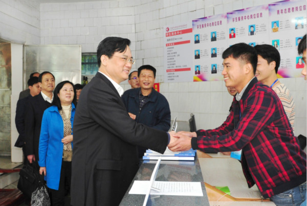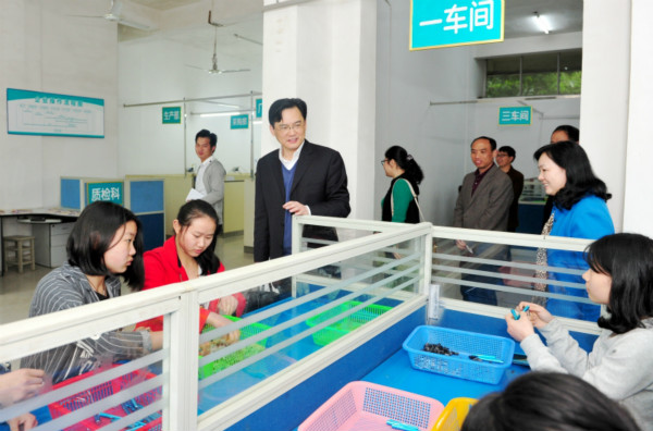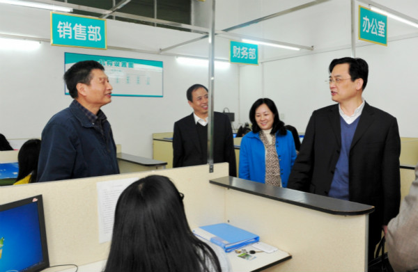 會后,王副廳長與教職工一一握手,在學校領導的陪同下考察了校園,參觀了學生服務中心和全景會計核算模擬“校中廠”。