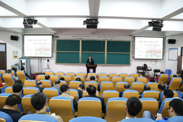 為加強(qiáng)師德師風(fēng)建設(shè),提高教師職業(yè)道德修養(yǎng),4月26日下午,學(xué)校在綜合樓七樓學(xué)術(shù)報(bào)告廳舉辦“強(qiáng)化‘責(zé)任·務(wù)實(shí)·合力’,提升職業(yè)道德素質(zhì)”專題報(bào)告會(huì),我校原校黨委副書(shū)記、紀(jì)委書(shū)記陳衛(wèi)東應(yīng)邀作專題報(bào)告。報(bào)告會(huì)由我校黨校校長(zhǎng)涂章橋主持。