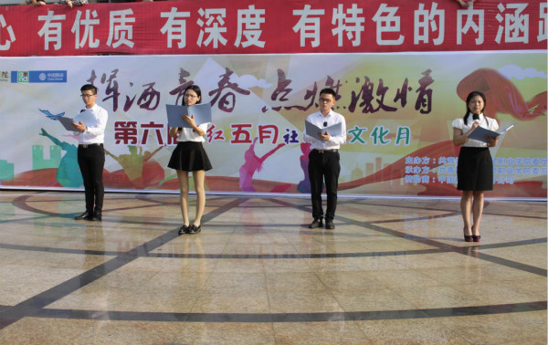 5月5日下午,以“揮灑青春,點燃激情”為主題的第六屆紅五月社團主題活動月開幕式在我校半月臺絢麗開幕。