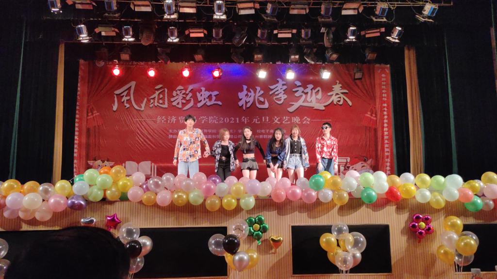 在優雅的古典舞《芒種》中,2021年元旦晚會拉開序幕。一首《你不是真正的快樂》體現了經旅學子才華與自信,溫婉嫵媚的現代舞《下雨天》,節奏輕快、青春洋溢的舞蹈《good time》,賽群燈塔基地舞蹈《燈塔風情,搖擺至上》為觀眾奉獻了一場視覺盛宴。盧習良老師《金翅舞》,陳錦泓老師《樂隊演奏》,展示了我院教師豐富多彩的才藝,將晚會推向高潮,小品《瘋狂旅游團》幽默詼諧、取材新穎,為晚會帶來了歡聲笑語;節目中穿插的微博互動上墻,嘉賓抽獎活動引燃了整場晚會的熱情。此外為表彰先進,晚會分別為學生會干部、校電商協會干部頒發聘書,魏城等10名同學榮獲第二屆十佳大學生,葉秀蕓等10名同學榮獲提名獎。