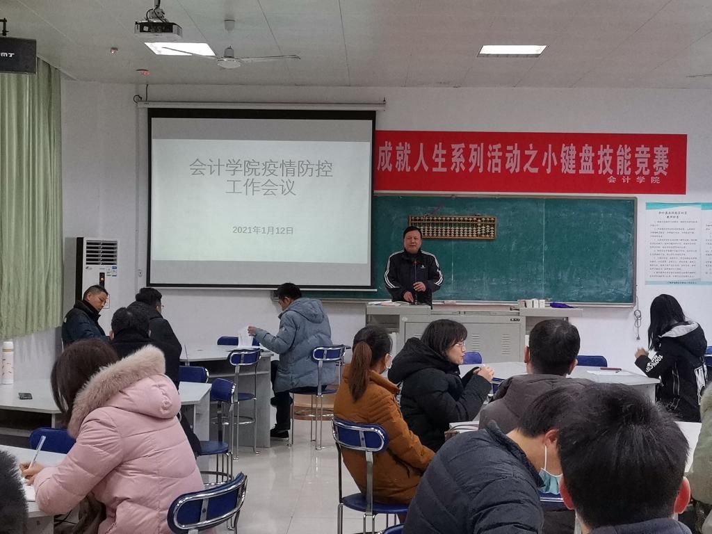 為貫徹落實《九江市關于做好2021年春節期間新冠肺炎疫情防控工作的通告》、學校新冠肺炎疫情防控推進會以及學校領導講話精神,1月12日下午,會計學院在東區一樓實訓室召開疫情防控工作會議,落實具體工作要求。會議由黨總支書記張家順主持,會計學院全體教職工參加會議。
