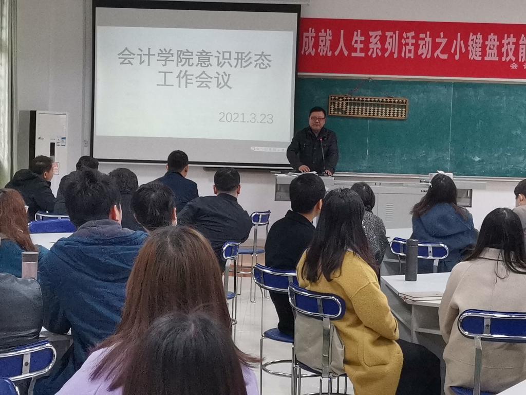 為進(jìn)一步加強(qiáng)和改進(jìn)意識(shí)形態(tài)工作,全面提升意識(shí)形態(tài)工作水平,2021年3月23日下午,會(huì)計(jì)學(xué)院在東區(qū)實(shí)訓(xùn)室召開意識(shí)形態(tài)工作暨宣傳思想工作會(huì)議。黨總支書記張家順主持會(huì)議并講話,全體教職工參加了會(huì)議。