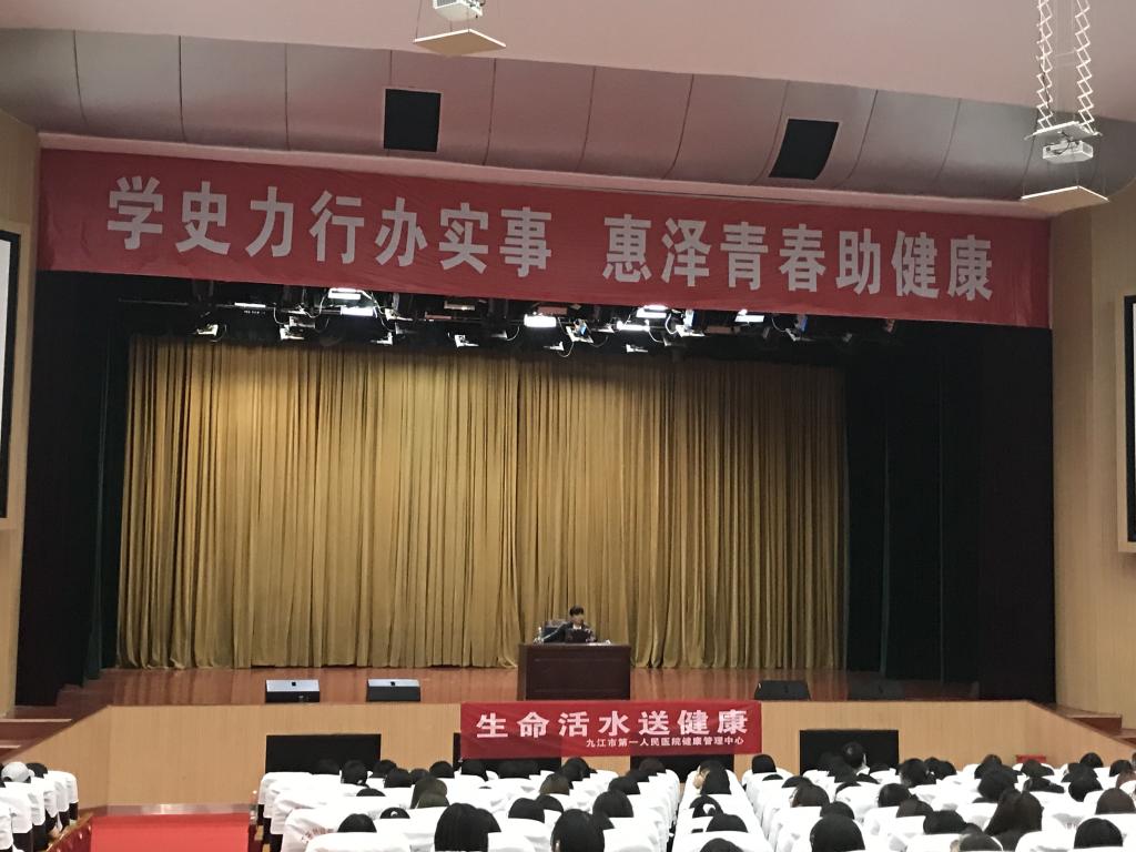 5月20日晚19:00-21:00,由外國語學院與經濟貿易學院、財稅金融學院聯(lián)合舉辦的以“學史力行辦實事,惠澤青春助健康”為主題的女性安全衛(wèi)生知識講座在英才交流中心舉行。此次講座特別邀請了九江市第一人民醫(yī)院的吳劍蘭醫(yī)生和汪裴醫(yī)生就“大學生生殖健康教育和防疫知識”對全體女生進行宣講。外國語學院黨總支書記熊水金,經濟貿易學院黨總支書記宋自奮,財稅金融學院黨總支副書記王怡然及三個學院的老師們參加了此次講座。