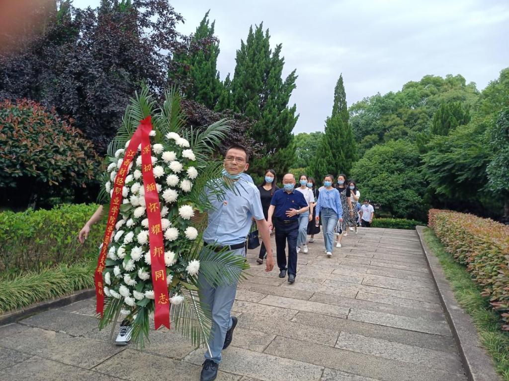 支部全體黨員排著整齊的隊伍登上臺階向胡耀邦墓敬獻花籃,并在雕像前三鞠躬,表達了對這位偉大的無產階級革命家、政治家的深切懷念和崇高敬意。