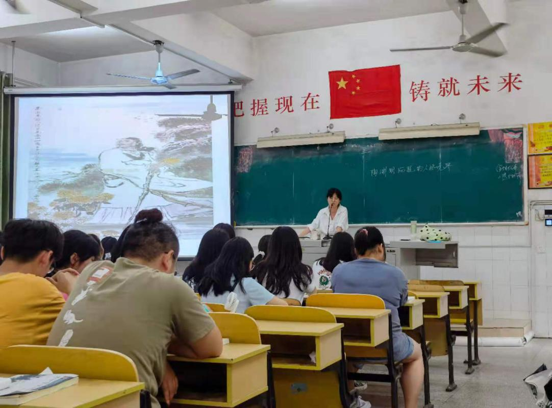 6月10日周四第7、8節課,我院中文教研室計昀教師在教學樓107室開展公開課教學。課程的主要目標是通過探索陶淵明“灑脫”的人格境界來展現陶淵明的精神歷程,對學生具有較好的人生啟迪作用。本課分為回顧所學詩歌、簡單介紹陶淵明生平、以《飲酒.其五》體悟陶淵明灑脫人格境界,最后總結陶淵明達到“灑脫”之境的前提和“灑脫之境”給陶淵明的影響。本次課以文本泡讀和審美體悟的方法為主,師生互動效果良好,課堂氛圍活潑生動,符合人文學科的教學特點。