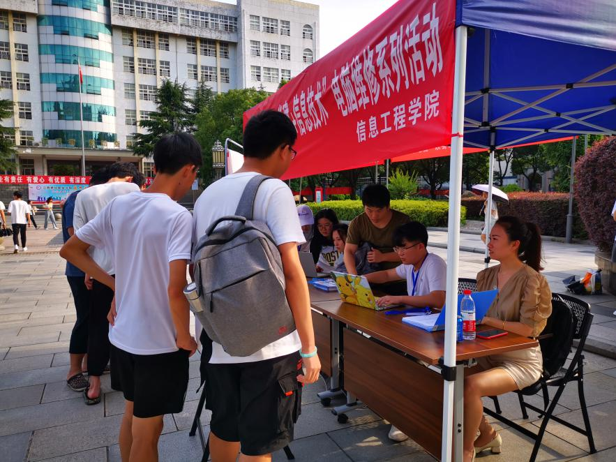 為了體現(xiàn)“黨建+信息技術(shù) 引領(lǐng)‘心’服務(wù)”黨建項(xiàng)目建設(shè)主旨,發(fā)揚(yáng)和學(xué)習(xí)雷鋒助人為樂(lè)的精神,6月8日下午4點(diǎn)30分,信息工程學(xué)院在文化廣場(chǎng)開(kāi)展黨建“一院一品”項(xiàng)目電腦維修活動(dòng)。