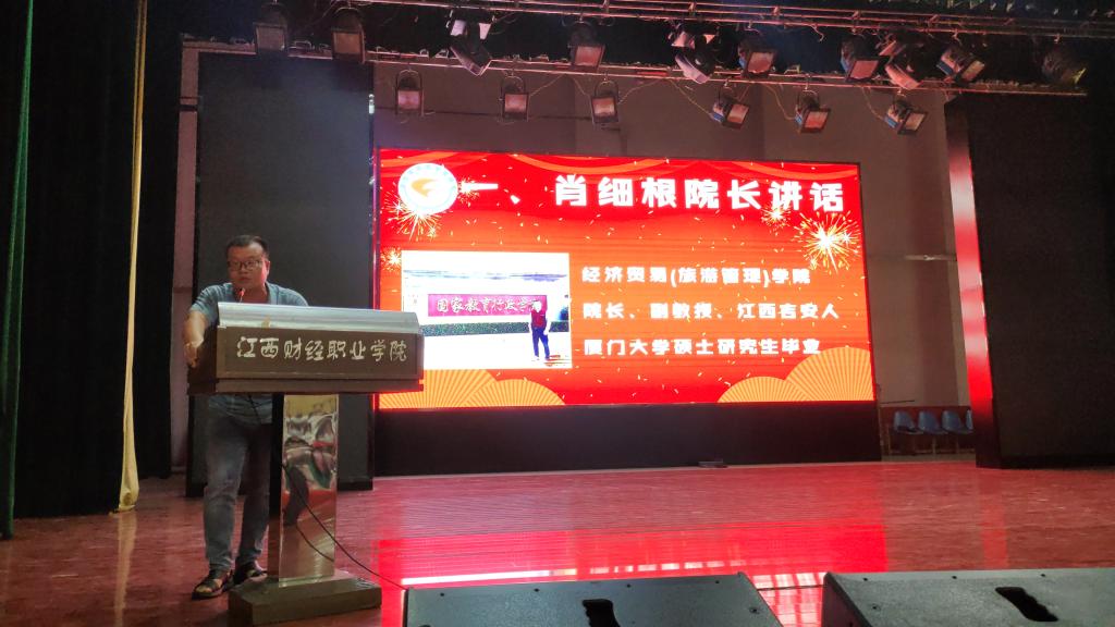 肖細根院長首先代表學院致歡迎詞,肖院長介紹了從歷史成就和文化底蘊等方面介紹了學校的基本情況,并從專業建設、課程培育、師資力量等方面介紹了經濟貿易(旅游管理)學院的基本情況及高質量教學服務的保障,并祝愿同學們通過三年的學習收獲鍛煉自己,成為一個做身心健康、知行合一、敢為人先的“財院人”。
