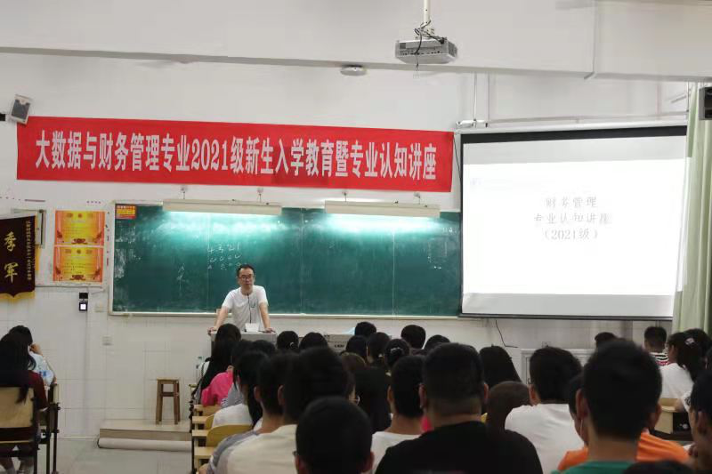 2021年9月8日下午,會計學院組織2021級大數據與財務管理專業3個新生班級100多名學生在教學樓108教室參加“大數據與財務管理專業認知”講座,講座由會計學院財務與審計教研室主任肖鐵鋒老師主講。