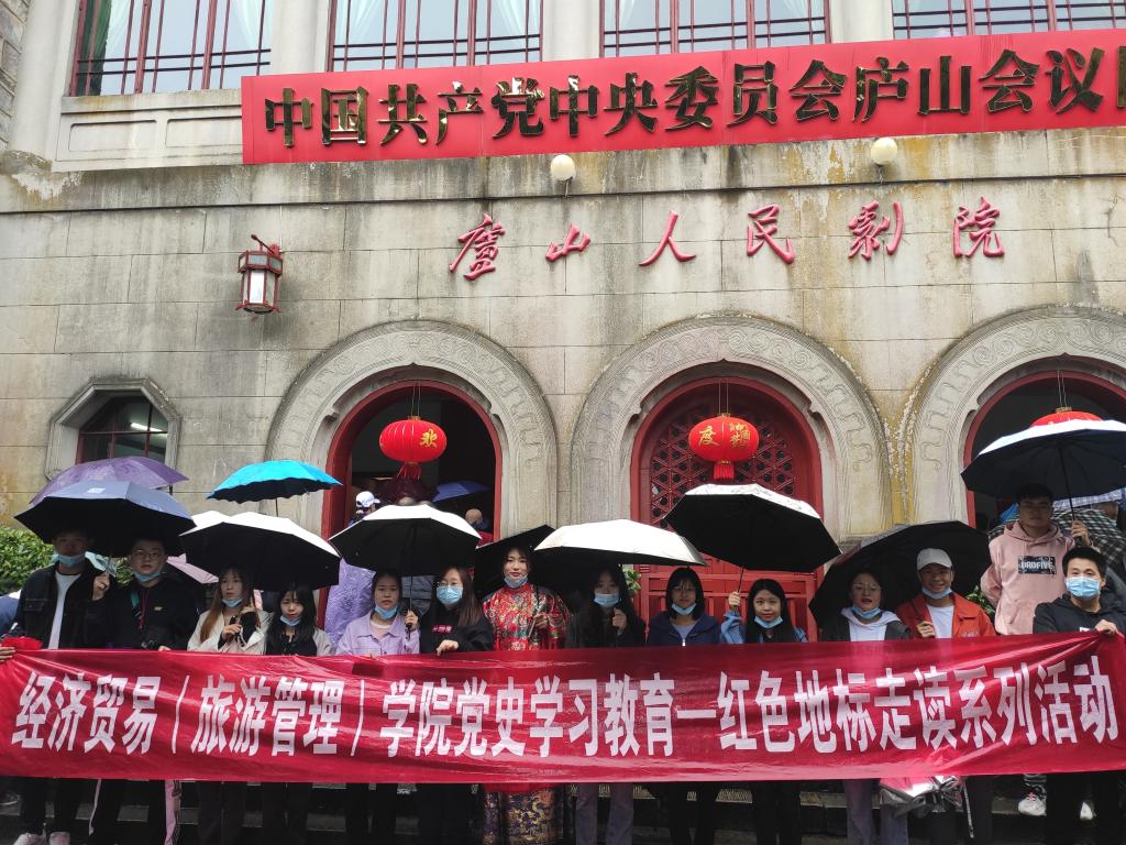 為追尋、感知紅色革命精神,做新時(shí)代紅色傳人,推進(jìn)黨史學(xué)習(xí)教育的深入開展,2021年10月15日上午,經(jīng)濟(jì)貿(mào)易學(xué)院教工黨支部教師、學(xué)生黨支部黨員赴廬山會(huì)議舊址和美廬別墅館開展“紅色地標(biāo)走讀”活動(dòng)。