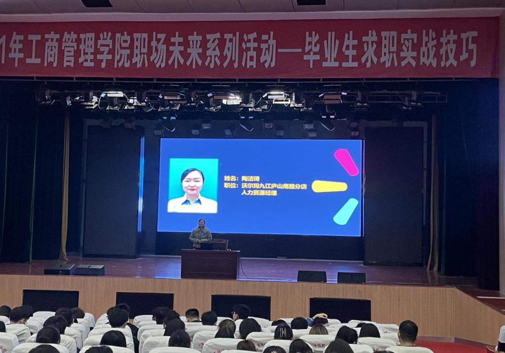 為幫助我院學(xué)生提升求職技巧,做好畢業(yè)生就業(yè)指導(dǎo)工作,10月22日下午16點30分,由工商管理學(xué)院主辦的“職暢未來”系列活動之畢業(yè)生求職實戰(zhàn)技巧在英才交流中心舉行。此次工商管理學(xué)院邀請到沃爾瑪九江店人力資源部陶經(jīng)理為我院全體19級學(xué)生開講。