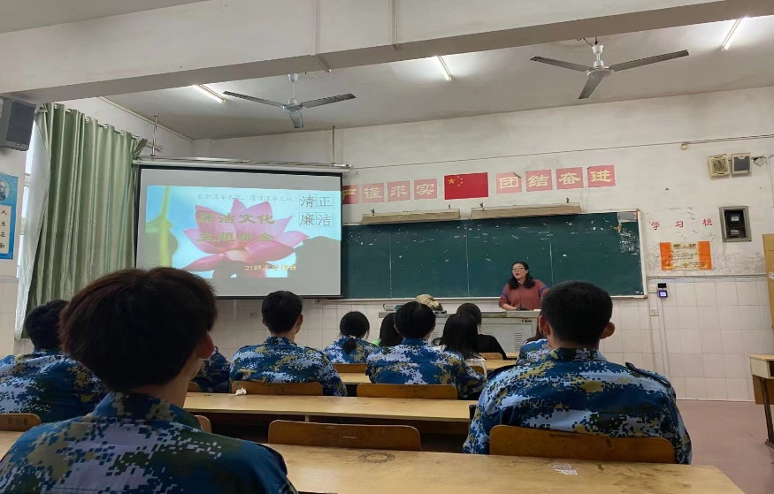 19級工程造價4班的班主任楊義剛老師對同學們說:時代呼喚廉潔文化進校園,在新的歷史時期,我們要站在新的制高點,以新的視角、新的理念、新的力度看待和推進廉潔文化活動,希望同學們從小事做起,廉潔自律。