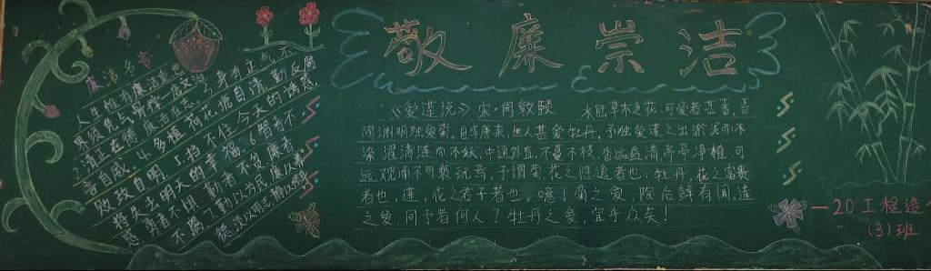 20工程造價3班以“廉潔伴我行”為班會主題,并出了黑板報。