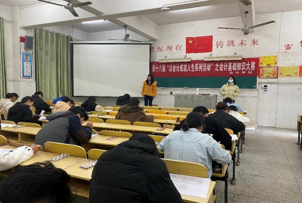 為提高2021級(jí)新生對會(huì)計(jì)專業(yè)學(xué)習(xí)的積極性和主動(dòng)性,提高會(huì)計(jì)專業(yè)技能,鍛煉專業(yè)思考能力,培養(yǎng)和展現(xiàn)會(huì)計(jì)專業(yè)知識(shí)的魅力,近期,會(huì)計(jì)學(xué)院在教學(xué)樓102教室成功舉辦了“以會(huì)計(jì)成就人生”系列活動(dòng)之會(huì)計(jì)基礎(chǔ)知識(shí)競賽,此次競賽共有100余名來自我院2021級(jí)大數(shù)據(jù)與會(huì)計(jì)等相關(guān)專業(yè)的同學(xué)報(bào)名參加。