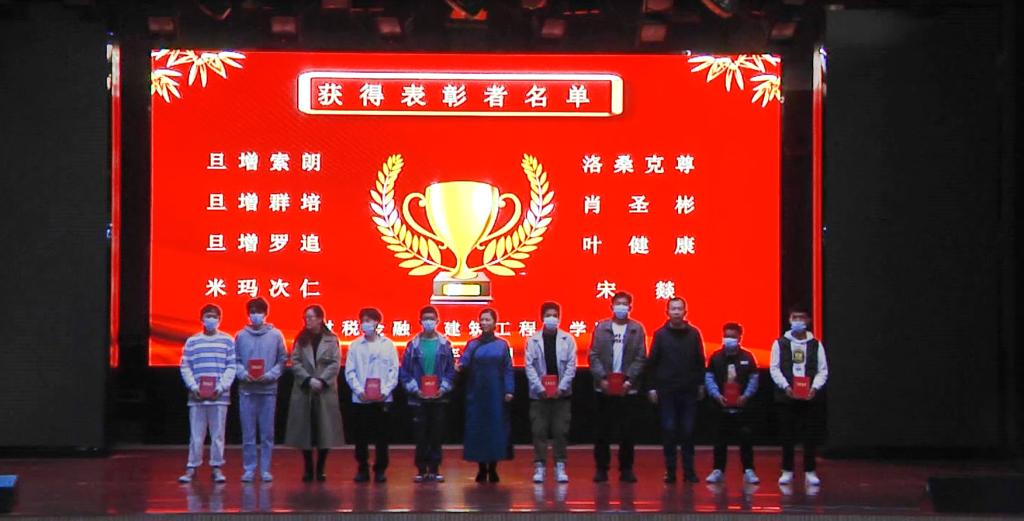2022年3月9日,財稅金融(城鄉建設)學院在校英才交流中心召開表彰大會,對文明校園建設中涌現出來的“救危扶困、關愛同學”的先進典型旦增索朗等8名同學進行了表彰。學院胡紅霞書記、呂亨龍副院長、王怡然副書記出席會議并頒獎。