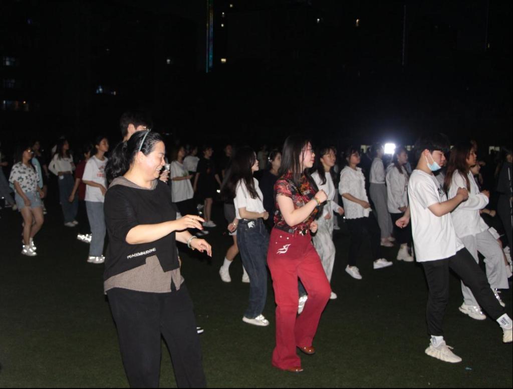 每周五、周六晚7點,數(shù)字經(jīng)濟學院“舞出健康 舞出快樂”廣場舞活動在田徑場如約舉行,根據(jù)疫情防控規(guī)定,同學們保持一米間距有序列隊,短暫的熱身活動結束后,廣場舞正式開始。在領舞同學的帶動下,隨著音樂的播放,同學們時而激情澎湃、鏗鏘有力,時而溫柔婉轉(zhuǎn)、婀娜多姿,現(xiàn)場的熱情感染了在場觀看的其他師生,他們相繼加入其中,享受舞動的快樂,釋放青春的熱情。