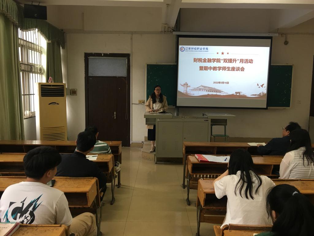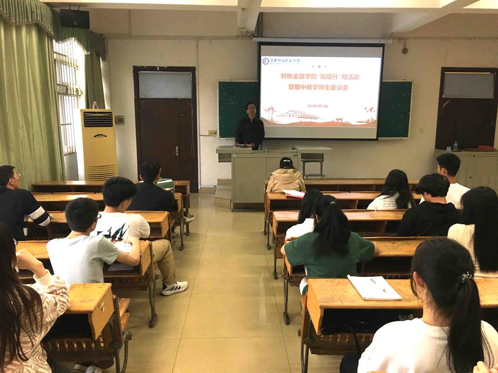為加強師生交流互動,全面提升學院教學質量和學生素質,2022年5月16日,財稅金融學院在綜階1室舉辦“雙提升”月活動暨期中教學師生座談會。學院領導、各教研室主任和20級、21級各班學生代表共50余人參加活動。活動由學院黨政辦公室主任張天明主持。