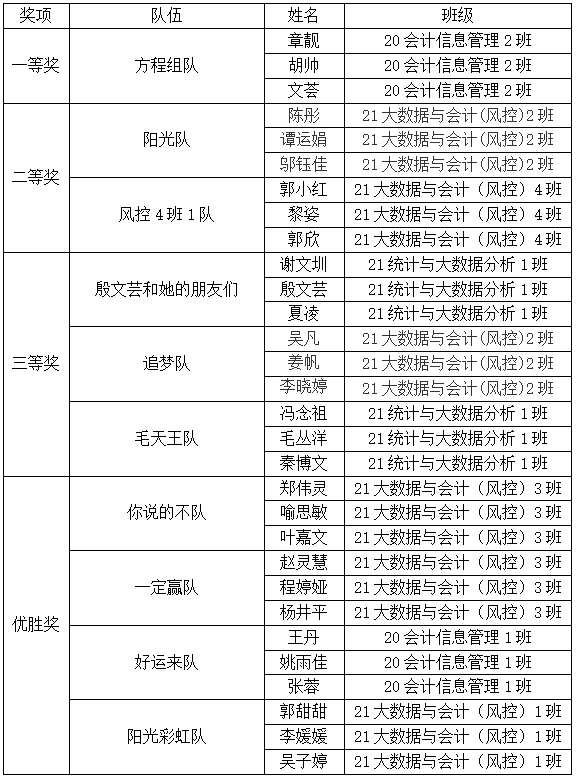 附 :2022年數字經濟學院第一屆《商務數據分析與可視化》競賽獲獎名單