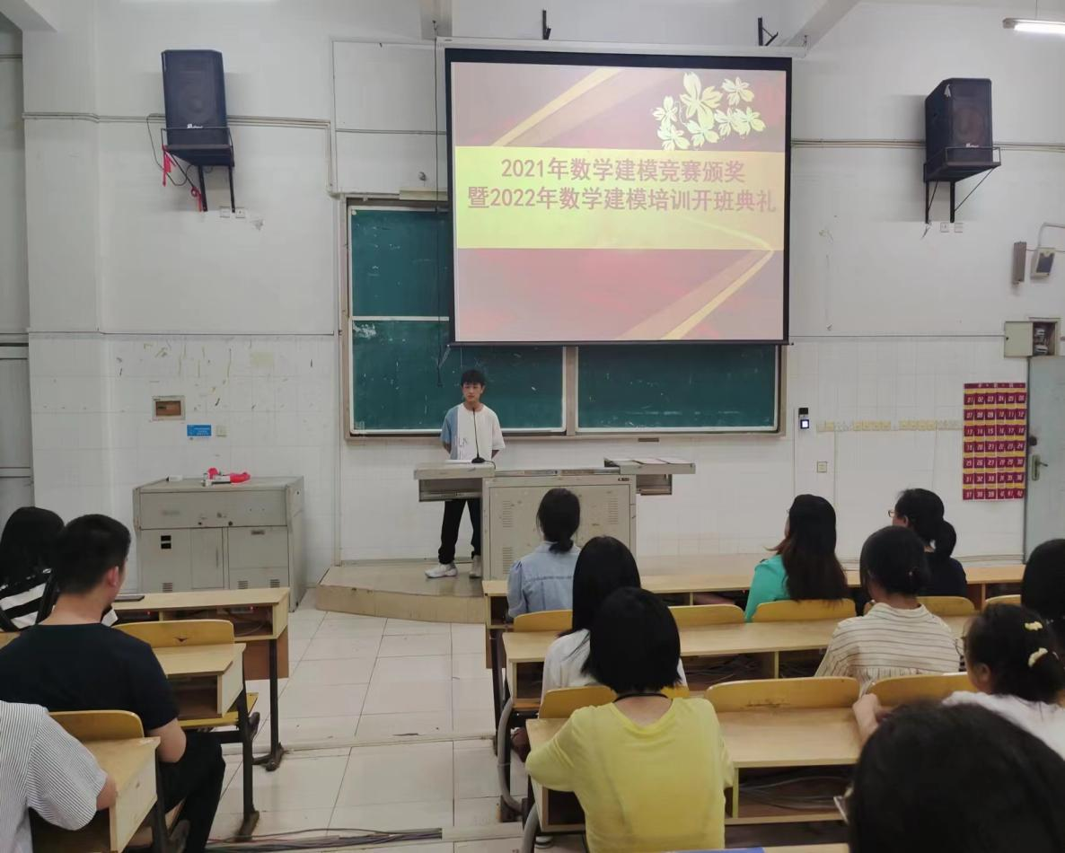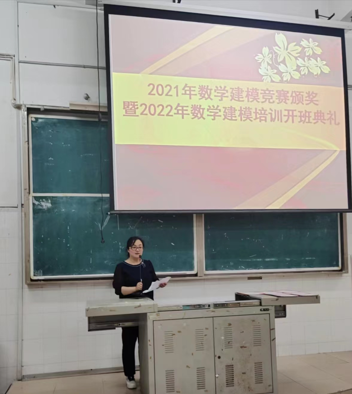2022年5月27日19時(shí),我校 2021年數(shù)學(xué)建模競賽頒獎(jiǎng)暨2022年數(shù)學(xué)建模培訓(xùn)開班典禮在教學(xué)樓617順利舉行。基礎(chǔ)教育學(xué)院副院長呂揚(yáng)、基礎(chǔ)教育學(xué)院黨總支副書記王美娟、數(shù)學(xué)教師代表、2021年數(shù)學(xué)建模競賽獲獎(jiǎng)的參賽隊(duì)員和報(bào)名參加2022年數(shù)學(xué)建模培訓(xùn)的學(xué)生共一百余人參加本次典禮。典禮由數(shù)學(xué)教研室主任賴婷婷主持。