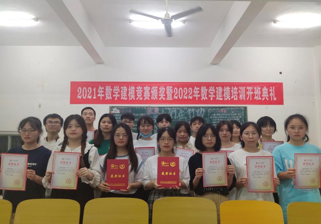 最后,主持人宣布為2021年全國大學(xué)生數(shù)學(xué)建模競賽獲獎(jiǎng)學(xué)生頒獎(jiǎng),在一陣陣熱烈的掌聲中,八支建模隊(duì)的24名同學(xué)上臺(tái)領(lǐng)獎(jiǎng),與會(huì)領(lǐng)導(dǎo)和老師為獲獎(jiǎng)學(xué)生頒發(fā)了獲獎(jiǎng)證書。