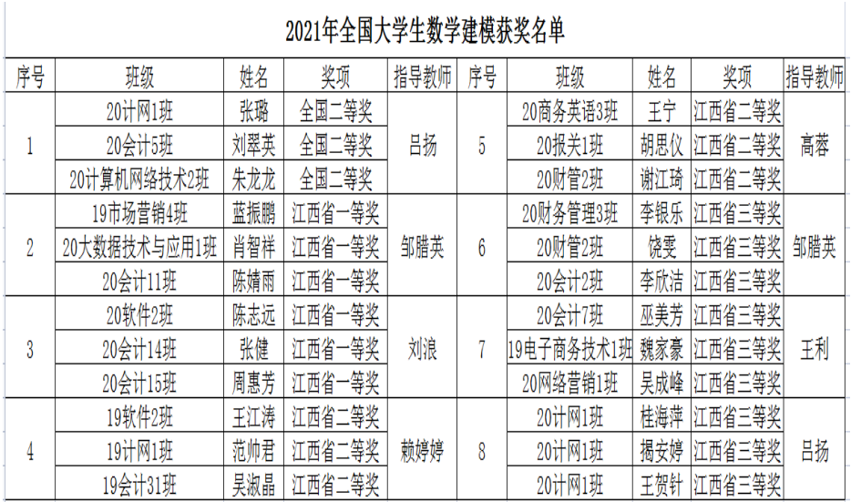 附:2021年數(shù)學(xué)建模競賽獲獎(jiǎng)名單
