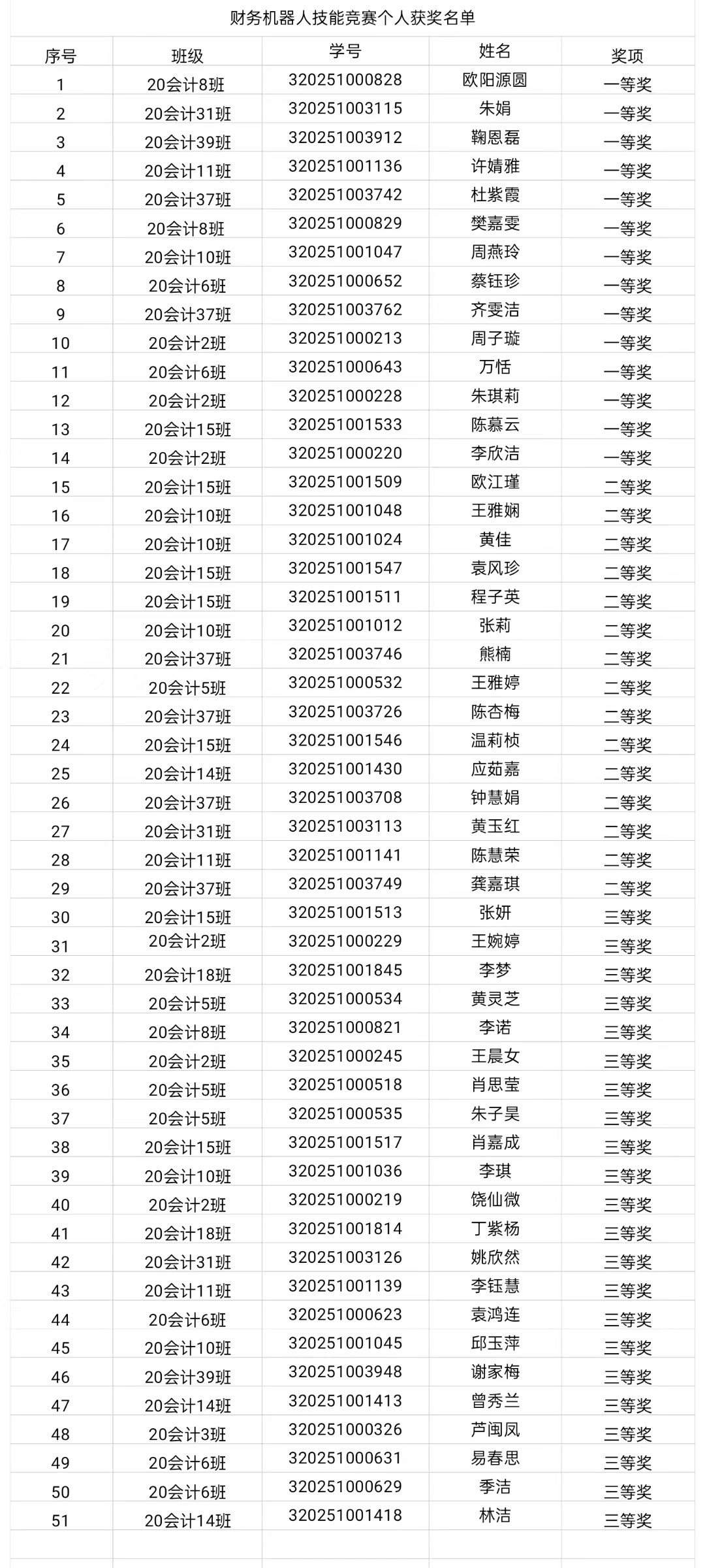 此次財務機器人應用與開發校內賽的成功舉辦,極大地豐富了同學們的業余生活,營造了拼博向上的學習氛圍,同學們對于財務數字化變革也有了更深刻地思考,激發了他們探究新科技和新技能的興趣。會計學院也將以此次大賽為契機,總結經驗,強化“以賽促教、以賽促學、以賽促改”的理念,爭取在教育教學、教學競賽中取得更大的進步,為培養出新一代復合型、應用型的智慧財務人才而加倍努力!