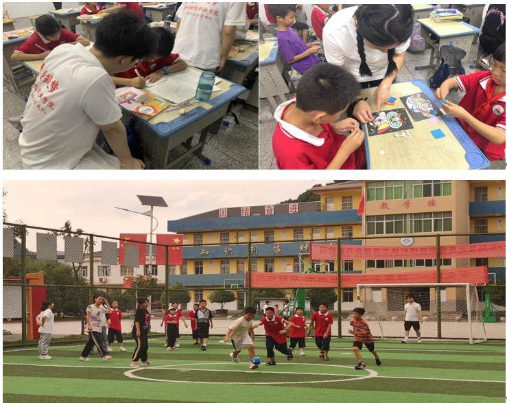 6月28日,江西財經職業學院“青春筑夢·三下鄉”社會實踐隊為高豐鎮中心小學的學生們開展了心理陪伴、學業輔導、自護教育、勵志教育、紅色教育等多種形式系列“童心陪伴”志愿服務。青春筑夢隊利用晚自習,根據小朋友的學習進度有針對性的進行作業輔導,隊員發現:“英語課程對村鎮的小學生來說是比較難學的”。在課余活動期間,隊員和小朋友一起開展了一系列豐富的室內外文體活動,如制作手工貼花、互動籃球、多彩飛盤、友誼乒乓球等,“青春玩伴”給留守兒童帶來了歡聲笑語,中心小學的小朋友們與青春筑夢隊許下了“青春約定”,在未來的日子里好好學習,期待下次相見。