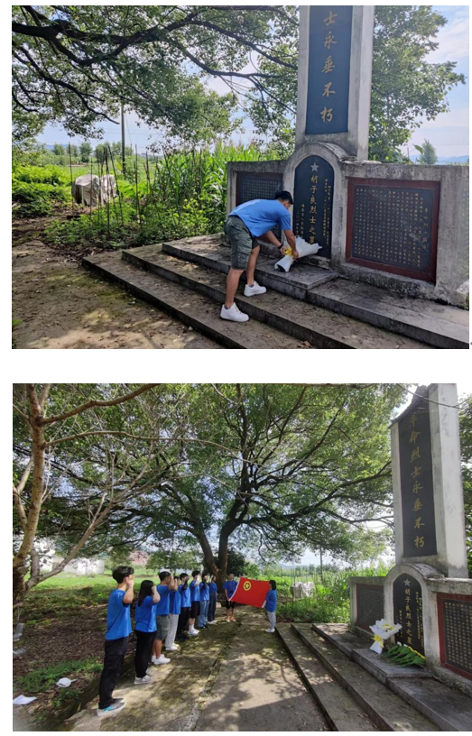 “追尋紅色足跡,緬懷革命先烈”,為繼承革命先烈遺志,弘揚革命烈士精神。6月25日,青春筑夢社會實踐隊前往瑞昌市高豐鎮胡子良烈士墓進行祭掃,面對著革命烈士的墓碑,隊員們懷著對革命先烈們的崇敬和緬懷之情,向革命烈士敬獻花束,莊重地為烈士默哀鞠躬,并于墓碑前重溫入團誓詞,鏗鏘有力的入團誓詞響徹了每一個角落。