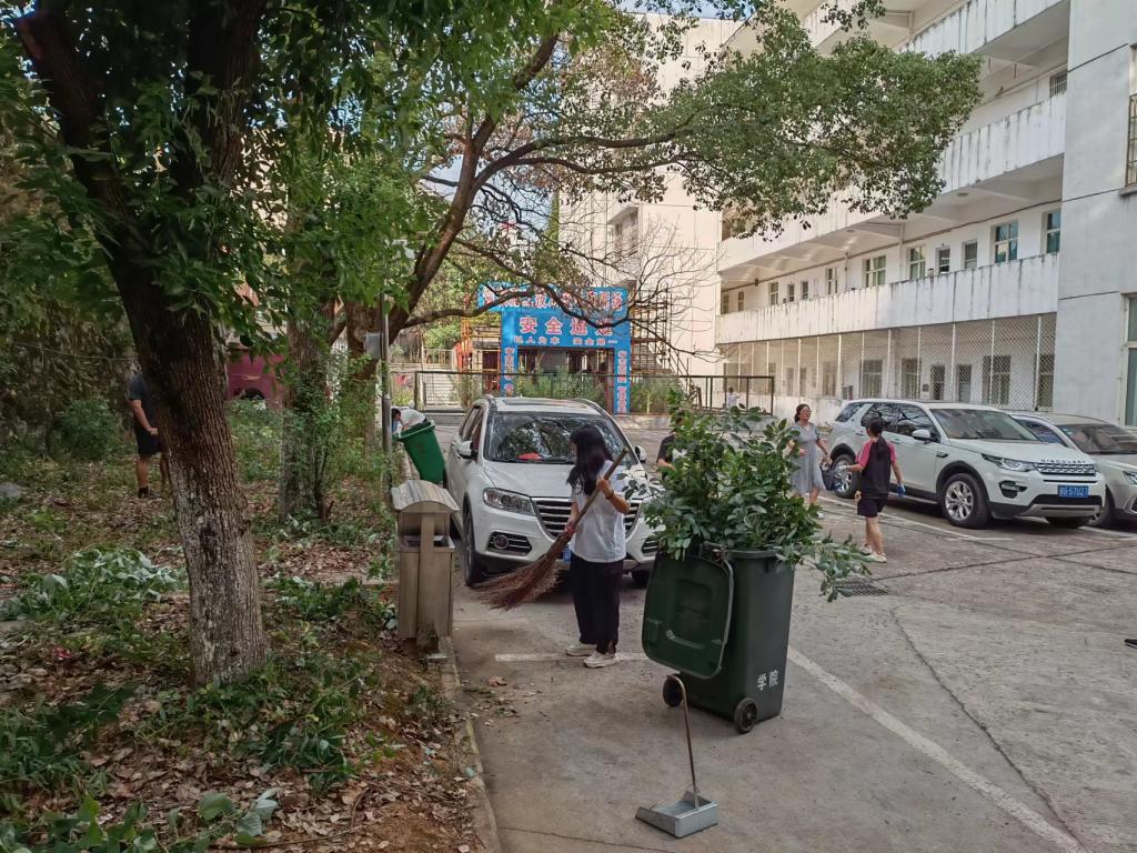 活動中,師生們充分發揚不怕臟、不怕累的精神,大家積極行動,揮舞著鏟子、掃把、鐮刀,對校園環境衛生進行認真打掃,他們除雜草、清枯枝、掃落葉、撿垃圾……對包干區進行了全面、細致、徹底的衛生清潔工作,做到不留死角、不留盲區,經過師生幾個小時的辛勤勞動,整整清運處理六大箱雜草和垃圾,包干區環境面貌煥然一新。