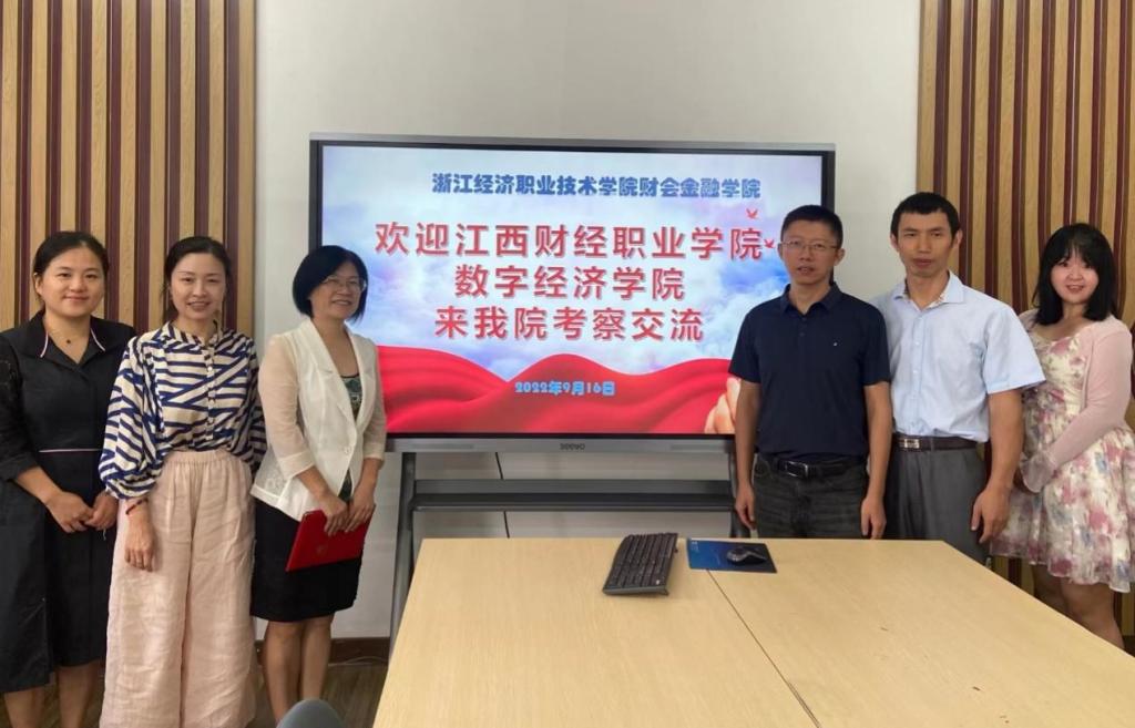 2022年9月16日,數字經濟學院專業建設小組章清、譚宏、方道華、邵子琪一行四人前往浙江經濟職業技術學院財會金融學院、物流與供應鏈管理學院進行學習交流。