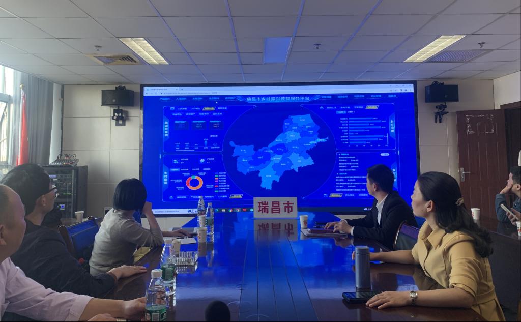 瑞昌市鄉村振興局局長曹名娥對江西省九江市都昌縣縣委常委江和通一行表示熱烈歡迎,并介紹了瑞昌市“數字鄉村”建設整體發展規劃。鄉村振興推進辦主任李小衛詳細講解了瑞昌市鄉村振興數智服務平臺的搭建思路,并現場演示了試點村鎮平臺的實際運營情況。該平臺包括五大場景(產業振興、人才振興、文化振興、生態振興、組織振興)和四大模塊(防返貧檢測、數字建設、數字治理及數字發展)。雙方就瑞昌市鄉村振興數智服務平臺的建設進行了深入研討。