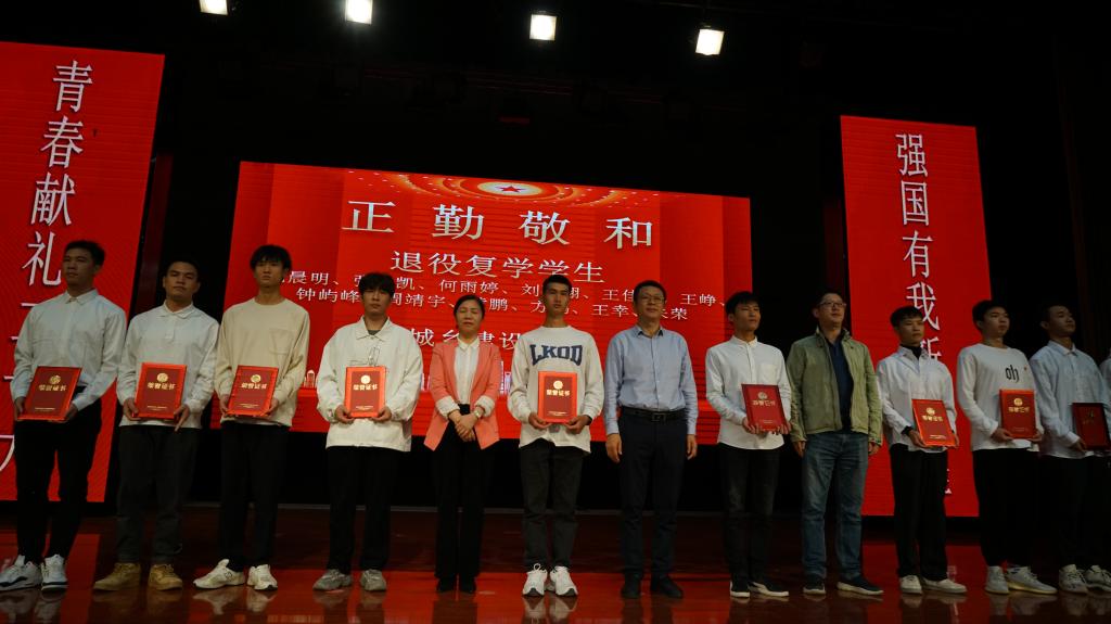 校黨委委員劉鋒、校招就處處長周劍等為城鄉建設學院退役復學學生頒發了榮譽證書,表示了學院對退役復學學生的歡迎,同時也鼓勵畢業生積極響應國家政策,參軍入伍為國家建設奉獻自己的青春力量。