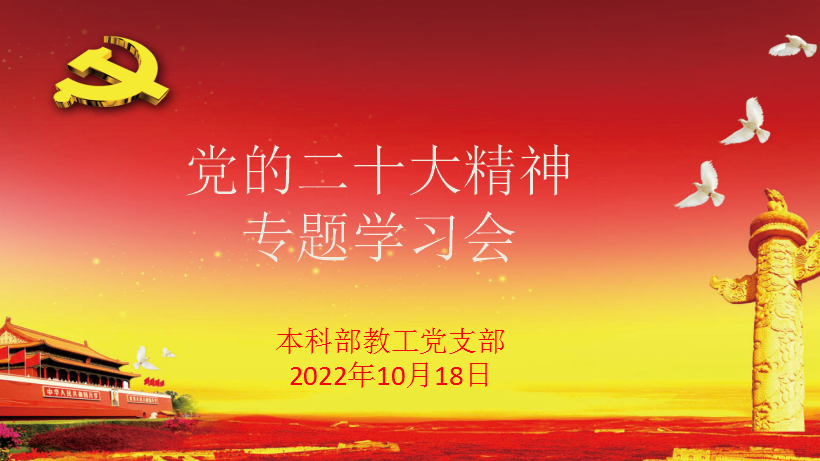 舉世矚目的中國共產黨第二十次全國代表大會10月16日上午在北京隆重開幕,習近平總書記代表第十九屆中央委員會向大會作報告。為認真學習黨的二十大精神實質和豐富內涵,10月18日下午,本科部教工黨支部組織召開了黨的二十大精神專題學習會。