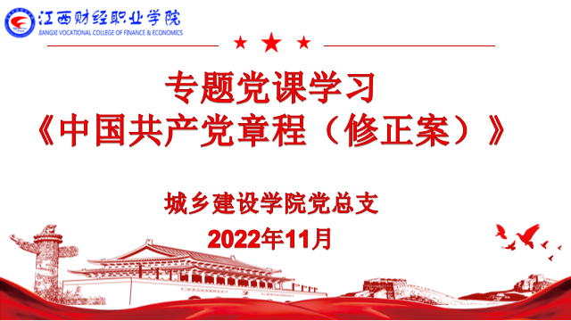 為深入學習修改后的《中國共產黨章程》,11月1日城鄉建設學院黨總支開展學習《中國共產黨章程(修正案)》專題黨課。此次黨課由學院黨總支書記胡紅霞同志擔任主講,城鄉建設學院全體黨員學習。