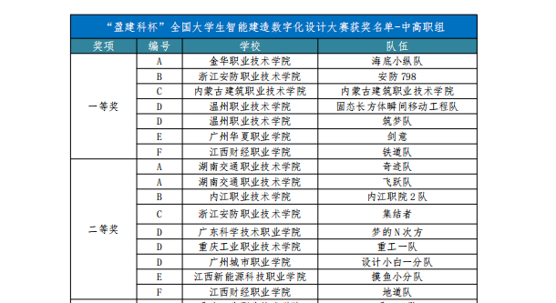 由中國建設教育協會主辦,廊坊市中科建筑產業化創新研究中心、北京盈建科軟件股份有限公司協辦的“盈建科杯”2022年度全國大學生智能建造數字化設計大賽全國大賽于2022年11月25-27日在線上舉行,由我院蔡小萍、張樂老師指導,蔡永浩、張子康、曹歡歡、繆飛、祝獻東五位同學組成的“鐵道隊”榮獲中高職組F賽項機電深化設計團體一等獎,黃鈞、周阮可、徐芬英、張子雄、曾學文五位同學組成的“地道隊”榮獲中高職組F賽項機電深化設計團體二等獎,兩位老師榮獲“優秀指導教師”稱號。