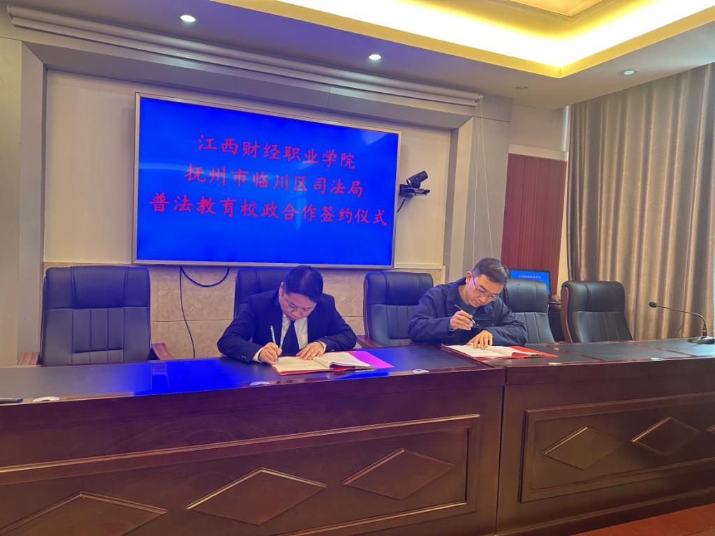 2023年1月13日,江西財經職業學院國際教育學院負責人王勝華書記,楊瑞副院長(主持工作)赴江西省撫州市與撫州市臨川區司法局洽談校政合作。經協商雙方同意在深化校政合作和普法教育,共同培養服務基層的法律人才,提高學校服務地方高質量發展能力等方面開展友好合作,并簽訂了合作協議書。