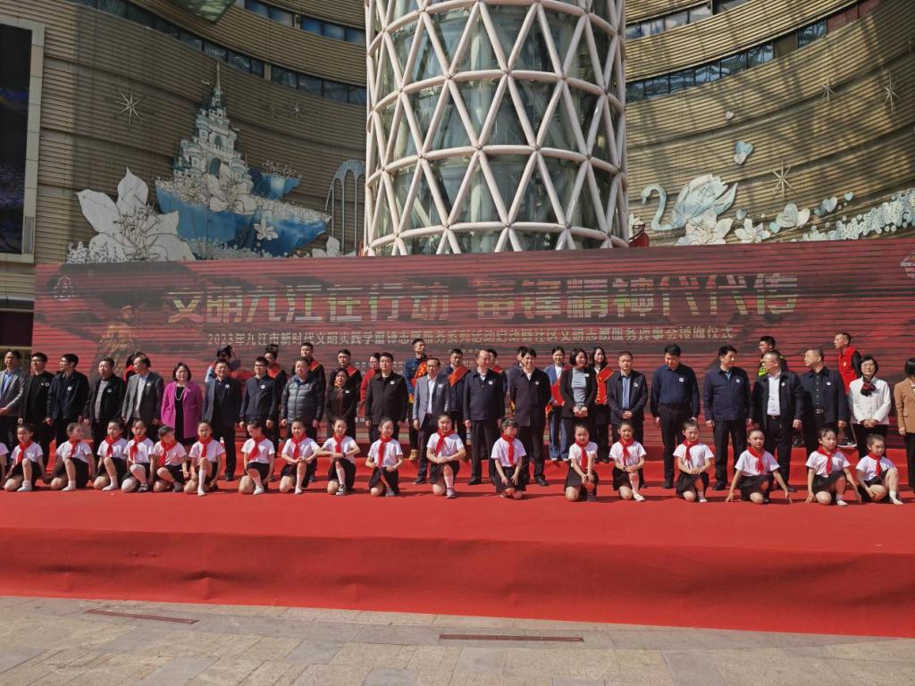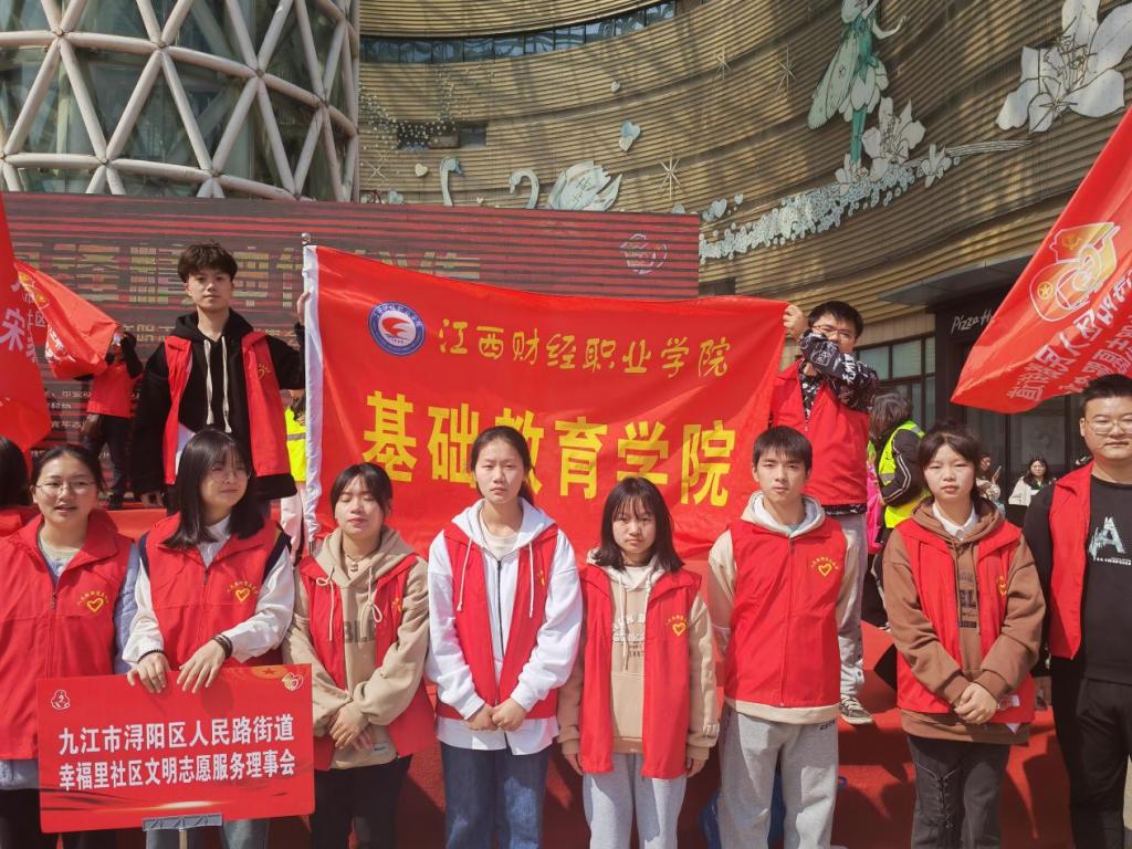 3月5日上午,由九江市委宣傳部、市創文辦、市文明辦、團市委主辦的2023年九江市新時代文明實踐學雷鋒志愿服務系列活動啟動暨社區文明志愿服務理事會授旗儀式在聯盛快樂城廣場舉行。九江市委常委、宣傳部部長孫金淼宣布系列活動啟動。基礎教育學院的學生代表們作為人民路街道幸福里社區志愿者參與了本次啟動儀式。