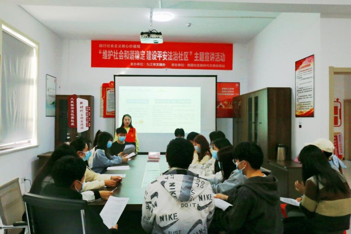 上午9點(diǎn),在桃園社區(qū)負(fù)責(zé)人的帶領(lǐng)下,我院志愿者參與了桃園社區(qū)創(chuàng)文宣講活動(dòng),讓社區(qū)群眾更進(jìn)一步知曉和理解九江創(chuàng)文的意義,激發(fā)社區(qū)群眾爭(zhēng)做文明行為的實(shí)踐者、文明風(fēng)尚的傳播者和文明城市的參與者。