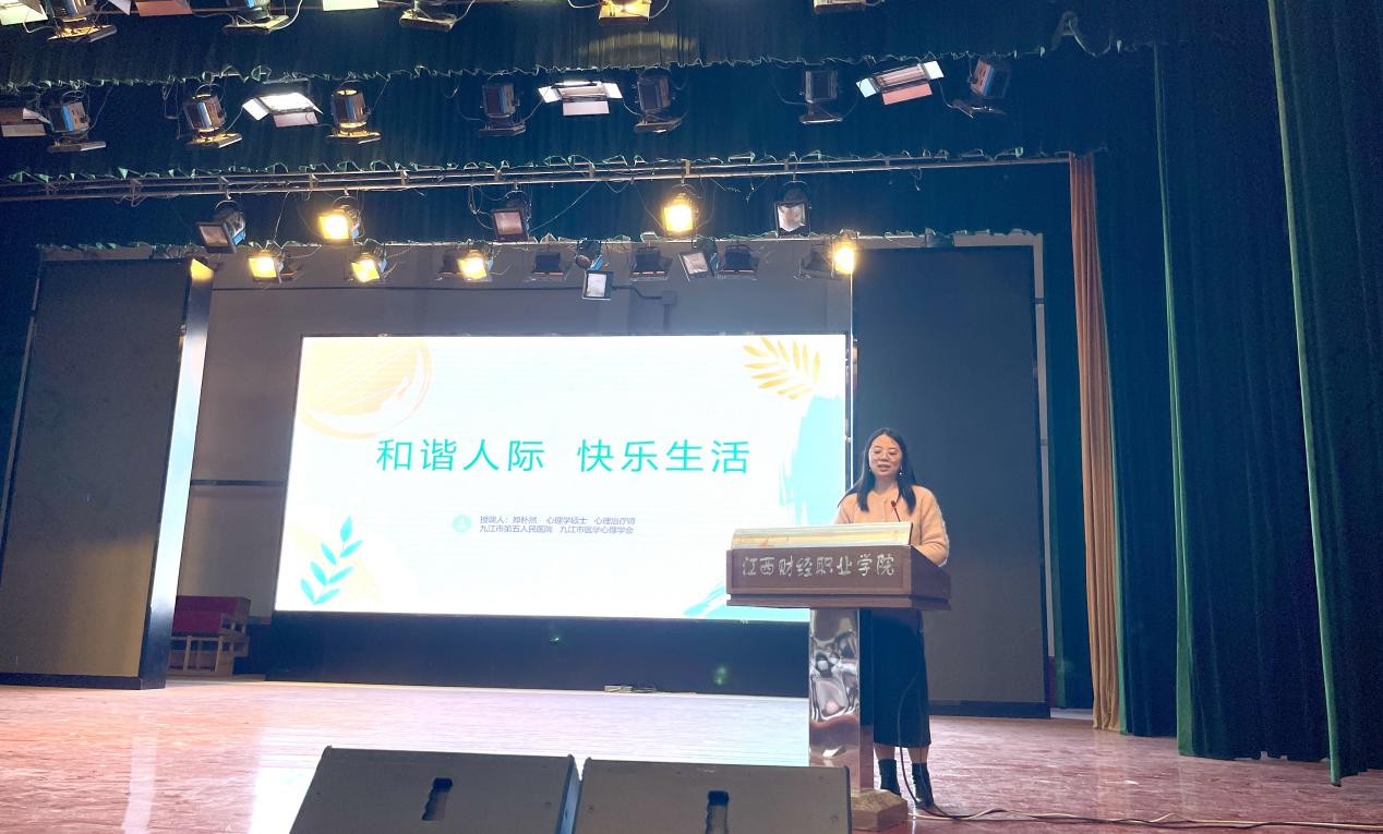 講座上半場以《向陽而生 逐光而行--積極心態的養成》為主題,張偉娟主任引經據典、幽默風趣,向同學們傳授了如何建立積極心態的方法以及積極心態應具有的思維、情緒、行為和品質。下半場,治療師鄭樸然以《和諧人際,快樂生活》為主題,向學生講授了正確的擇友觀、人際溝通的重要和經營人際關系的原則等心理健康知識。